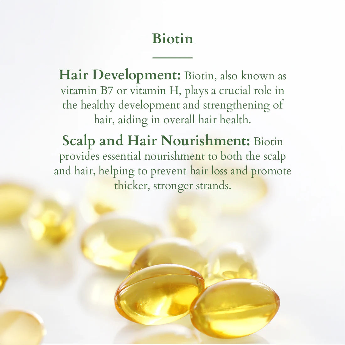 Biotin:Biotin is an excellent source of Vitamin B7 & Vitamin-H which promotes hair growth and restores hair volume, thickness, and scalp coverage.