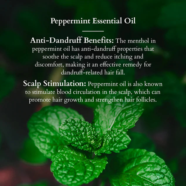 - Peppermint essential oil boosts blood circulation, delivers vital nutrients to hair follicles for healthy growth, provides a cooling effect, and reduces dandruff.
