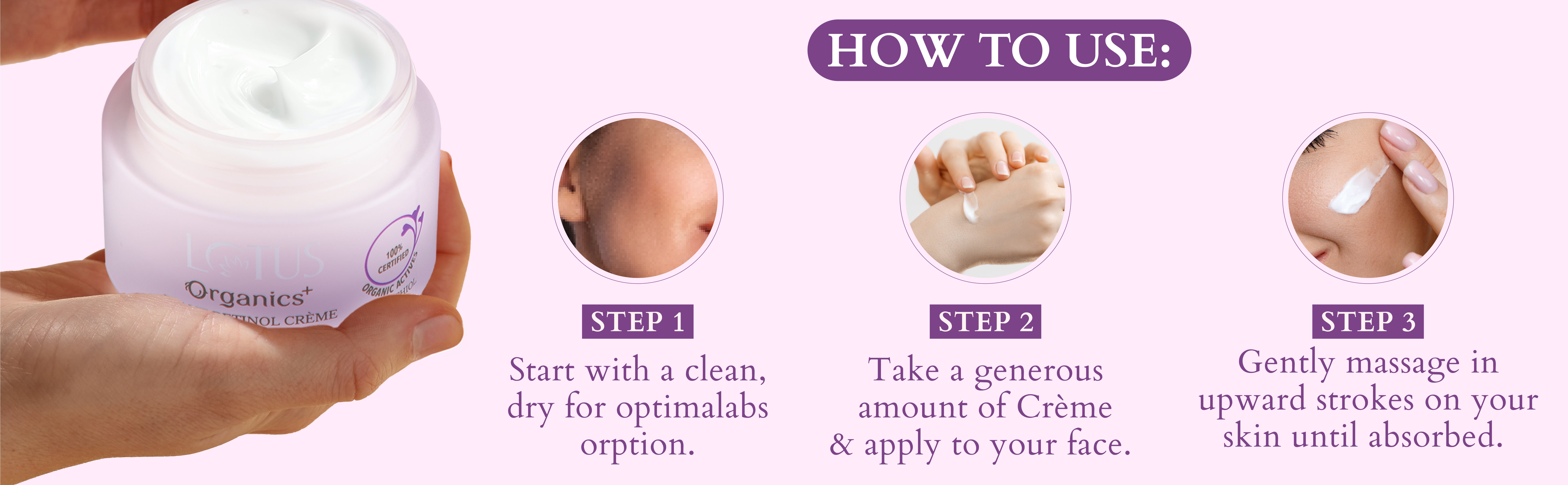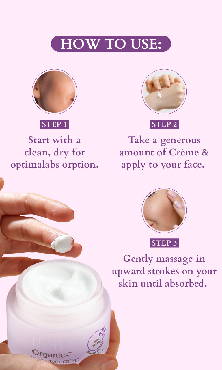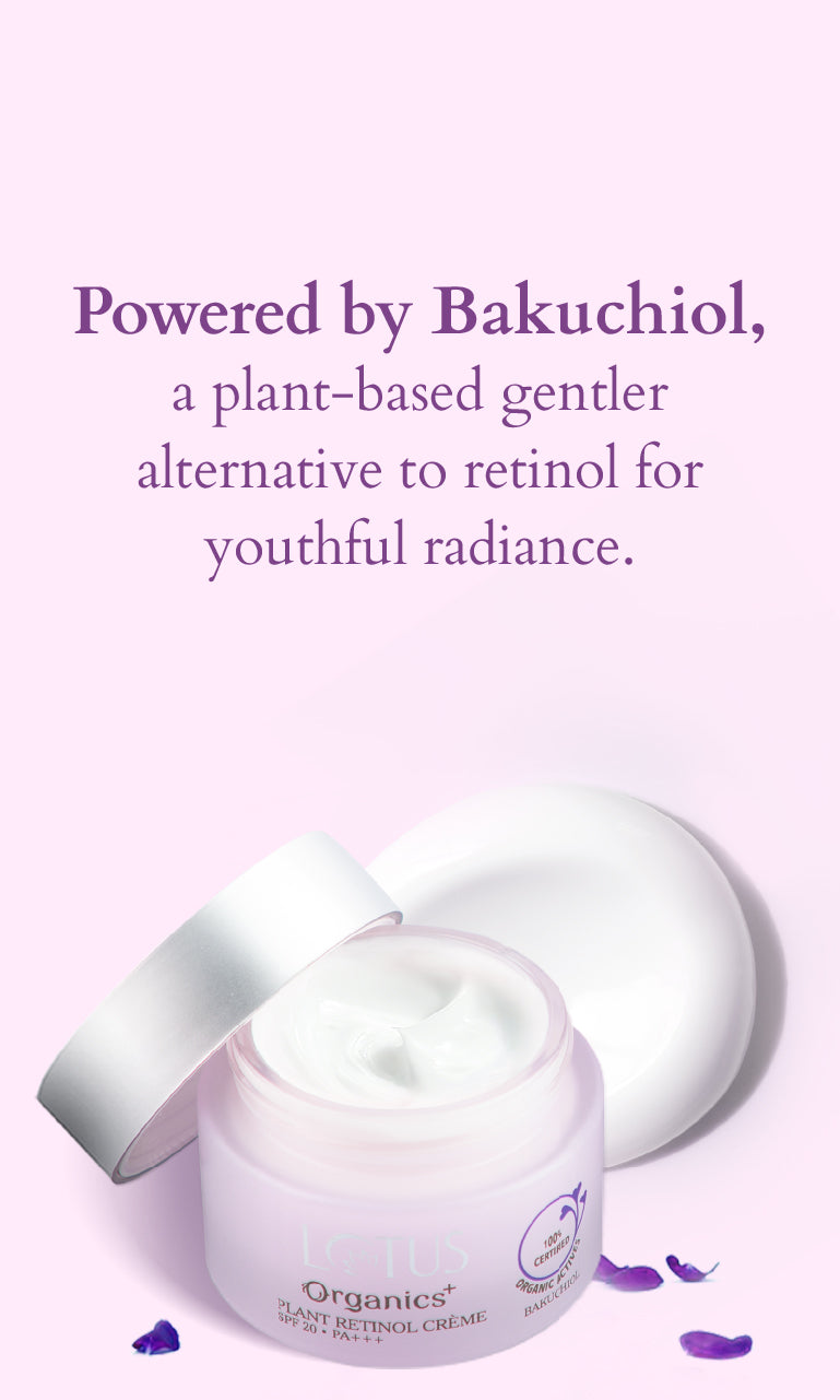 A: Unlike retinol, Lotus Organics+ Bakuchoil Range doesn’t have a photo-sensitized compound: it does not increase skin sensitivity to the sun's UV rays. Thus, you can incorporate the Bakuchoil Range into your morning as well as evening skincare. In the morning, begin with cleansing, toning, and then moisturising generously with Bakuchoil Plant Retinol Crème, it's a lightweight day formula that renders a dazzling glow to the skin, leaving it moisturised & nourished all day long. Note: Don’t forget to follow up your morning routine with a broad-spectrum SPF rated at 30 or greater.