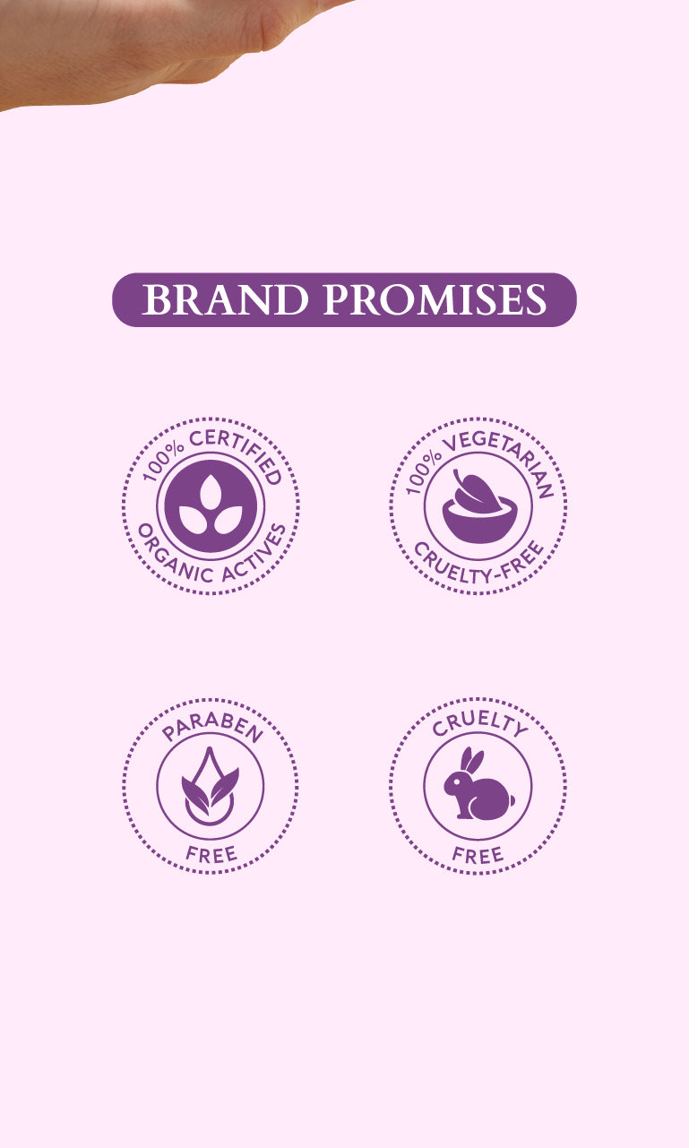 The promise of Purity:Vegan, Cruelty-free, Preservative-free, Sulphate-free, Paraben-free ; made with 100% Certified Organic Actives.