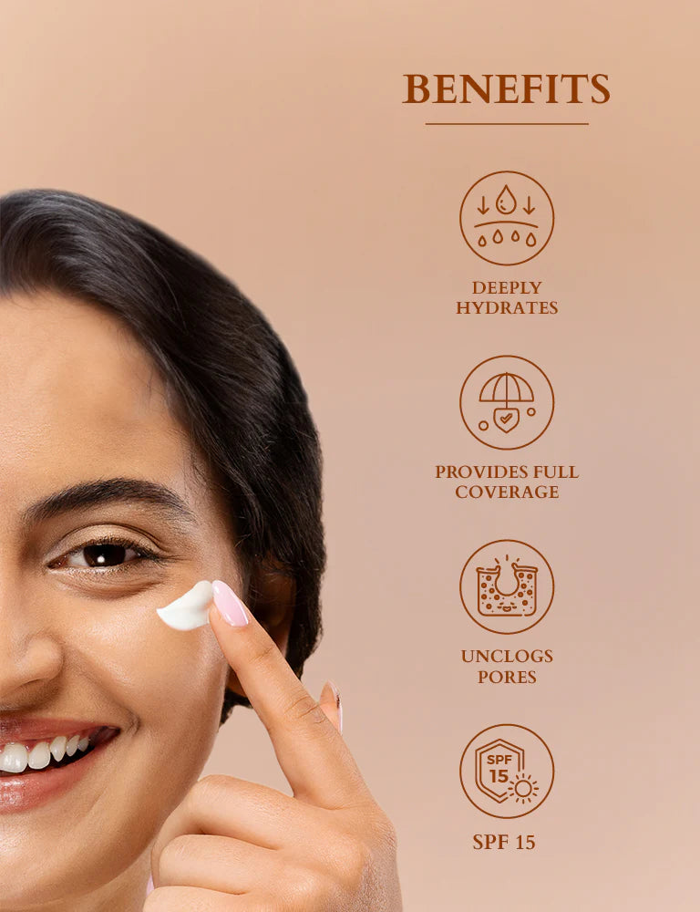 Lotus Organics Shea Luxe Tinted Moisturiser solves this problem by providing a moisturizer that provides full coverage like a foundation but with intense moisture and SPF 15, backed by the power of 100% organic shea butter. This holy grail hydration ingredient helps add and retain moisture while nourishing the skin with vitamins and soothing inflammation.