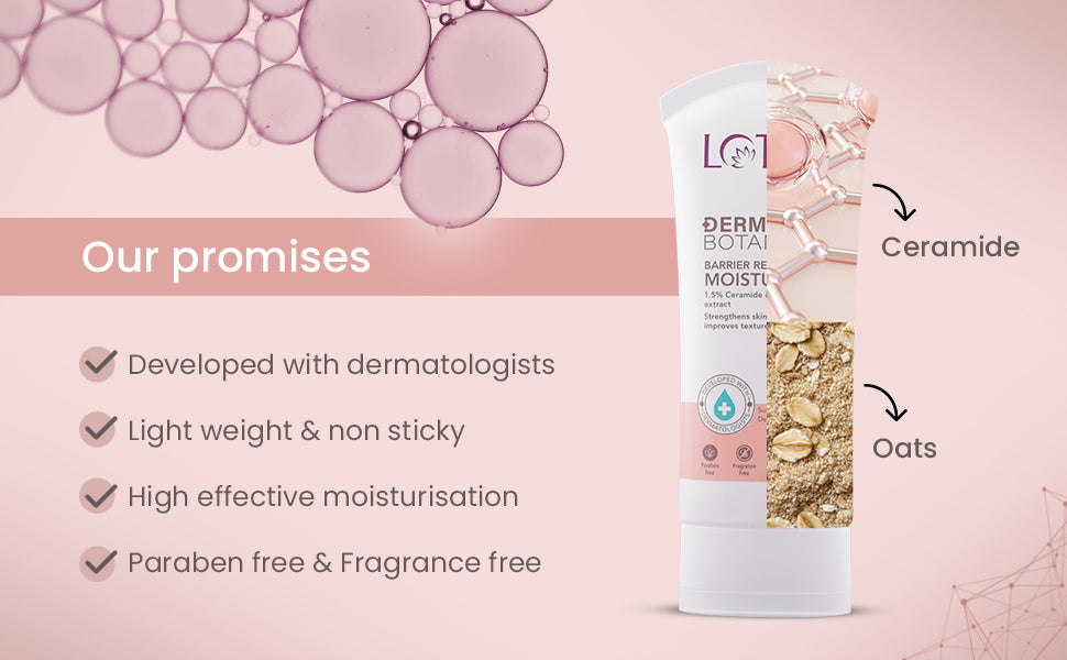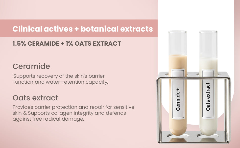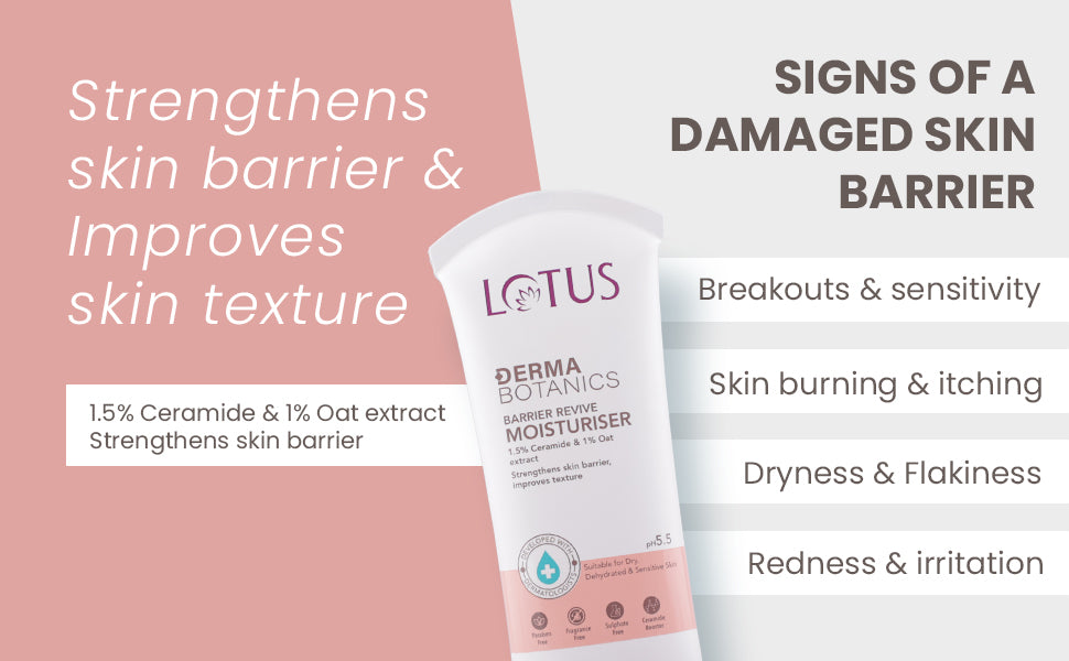 Barrier Revive Moisturizer is a lightweight, non-sticky formula with 1.5% Ceramide, 1% Oat Extract, 8% Niacinamide, and 25% ceramide booster properties. Clinically formulated to repair and strengthen the skin barrier, it delivers deep hydration and soothing relief for sensitive, compromised skin