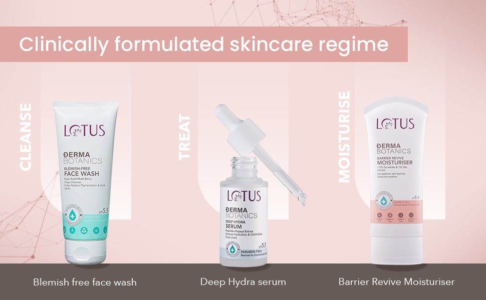 - Cleanse your face with a gentle cleanser like Lotus Derma botanics blemish free face wash
