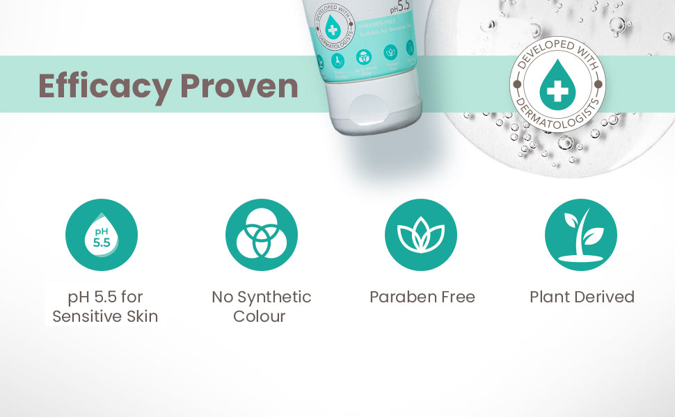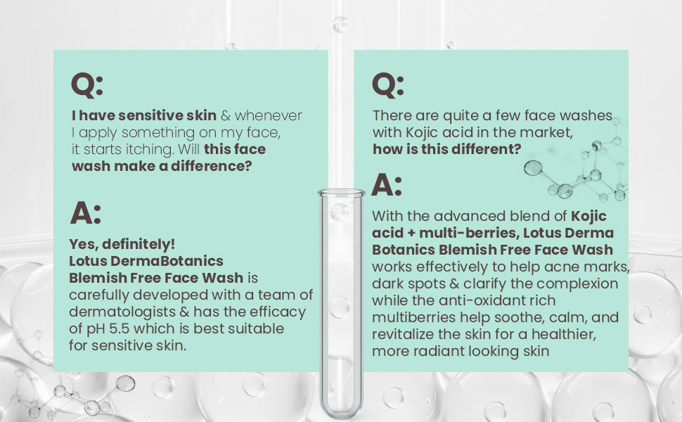 A: The pH level 5.5 in DermaBotanics Blemish-Free Face Wash is ideal for maintaining the skin's natural balance. Our skin has a slightly acidic pH, which helps to protect it from harmful bacteria and environmental pollutants. Our facewash ensures that the skin’s protective barrier remains intact, preventing dryness, irritation, and overproduction of oil. This balanced pH also supports the efficacy of other skincare products used in your routine.