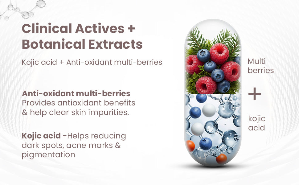 A: Use Kojic acid + Multi berry Blemish - Free Facewash twice a day for the best benefits of ingredients.