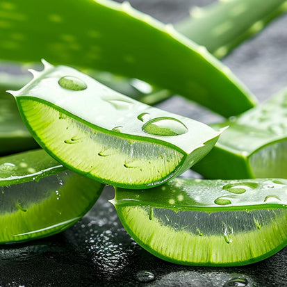 Aloe Vera helps maintain the skin's ph balance and hydrates it naturally. It has a soothing effect on the skin as it acts as a cooling agent. The anti-inflammatory properties of aloe Vera help fight acne and blemishes. It works as an astringent that reduces the size of pores by flushing out dirt from them.