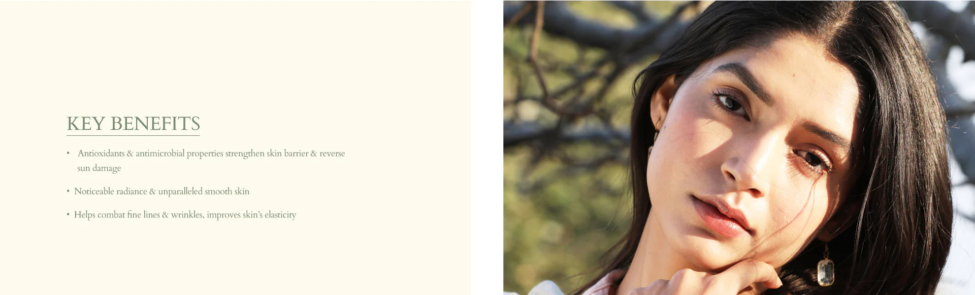 - Antioxidants & antimicrobial properties strengthen skin barrier & reverse sun damage