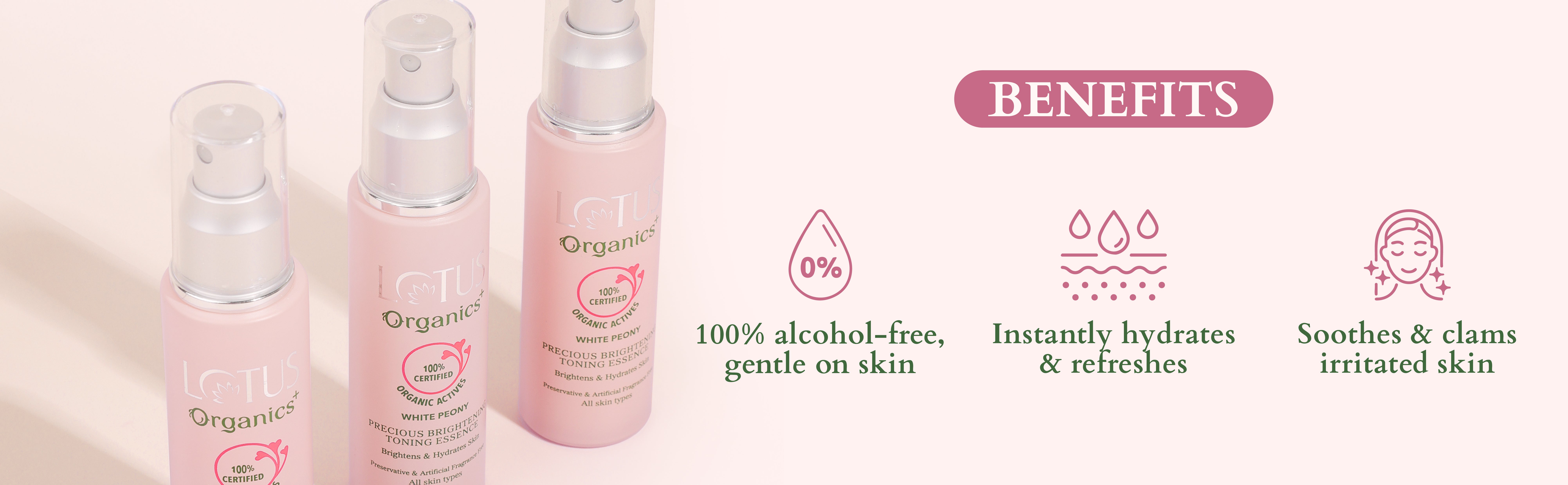 The promise of Purity:Vegan, Cruelty-free, Preservative-free, Sulphate-free, Paraben-free ; made with 100% Certified Organic Actives.