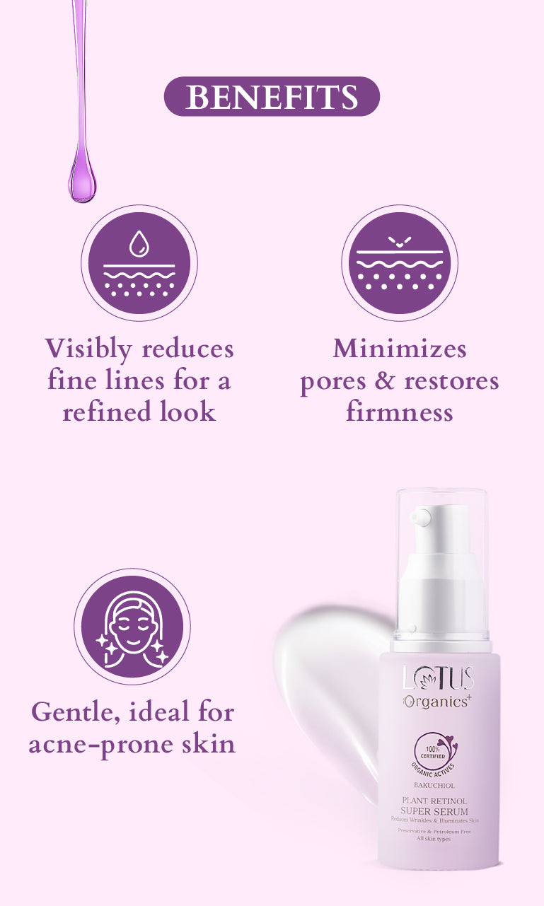 A: Unlike retinol, Lotus Organics+ Bakuchoil Range doesn’t have a photo-sensitized compound: it does not increase skin sensitivity to the sun's UV rays. Thus, you can incorporate the Bakuchoil Range into your morning as well as evening skincare. In the morning, begin with cleansing, toning, and then moisturising generously with Bakuchoil Plant Retinol Crème, it's a lightweight day formula that renders a dazzling glow to the skin, leaving it moisturised & nourished all day long. Note: Don’t forget to follow up your morning routine with a broad-spectrum SPF rated at 30 or greater.