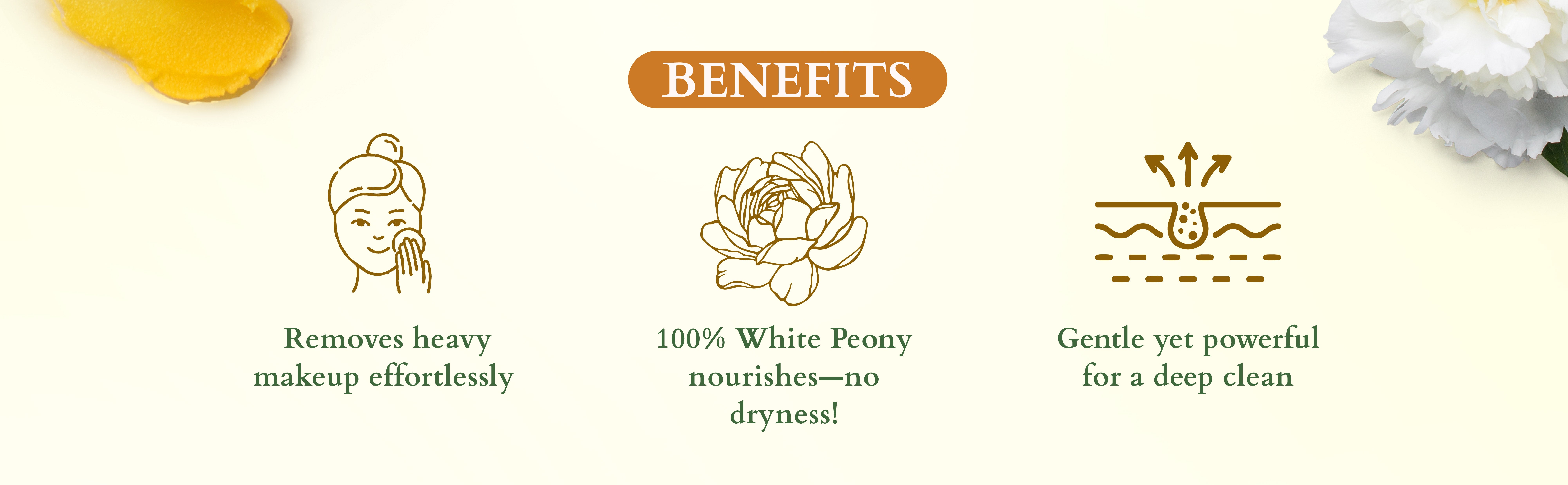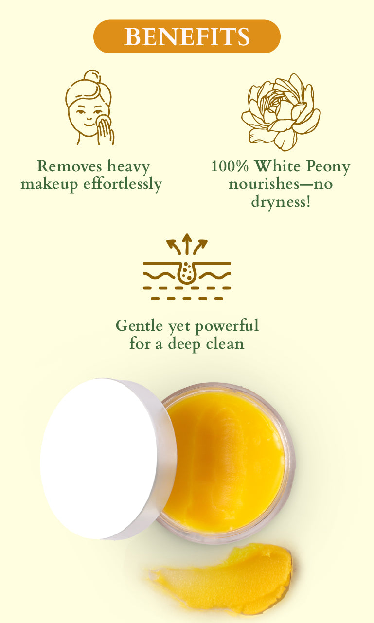 A luxurious, non-greasy cleansing balm with a soothing formulation that helps remove dust, grime & other pollutants. The non-greasy, velvety smooth texture melts the rigorous makeup exquisitely without stripping away the skin’s natural oils.