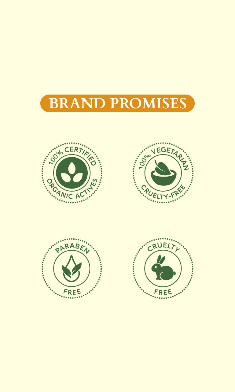 The promise of Purity:Vegan, Cruelty-free, Preservative-free, Sulphate-free, Paraben-free ; made with 100% Certified Organic Actives.