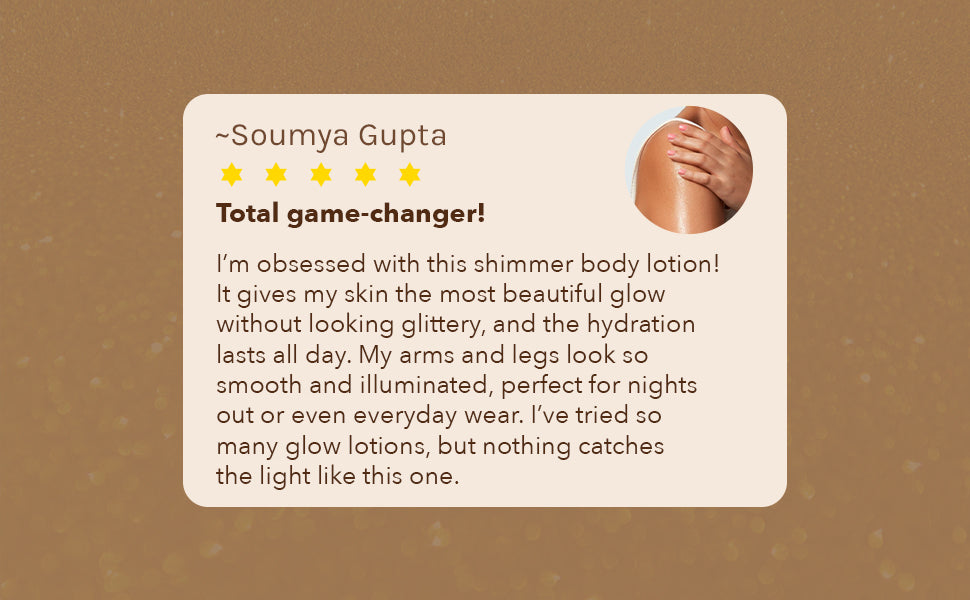 Super Glow Shimmer Lotion is a nourishing body highlighter that leaves your skin radiant and smooth. Infused with rich shea butter, it deeply hydrates while adding a luminous shimmer. Lightweight and smooth, it enhances the natural definition of your arms, legs & shoulders giving you a healthy, glowing finish without any greasiness. Perfect for everyday radiance or a glam, lit-from-within look.