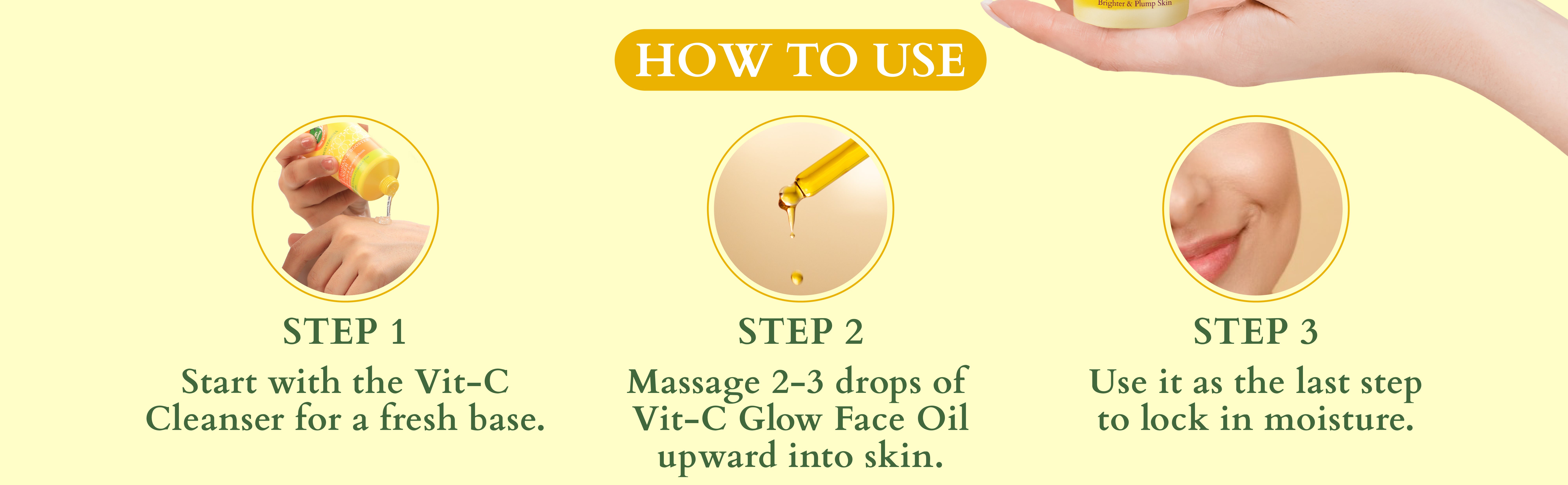 • Cleanse your face, and begin the ritual by massaging 2-3 drops of the Radiance Facial Oil between your hands. • For a therapeutic experience, apply the oil upward and massage your face with your fingertips. • For the nighttime routine, use Radiance Facial Oil as the last step to lock in moisture.
